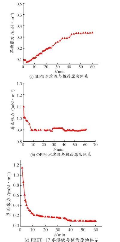 图1 SLPS,OPP4和PBET-17水溶液-桩西原油体系油-水动态界面张力
