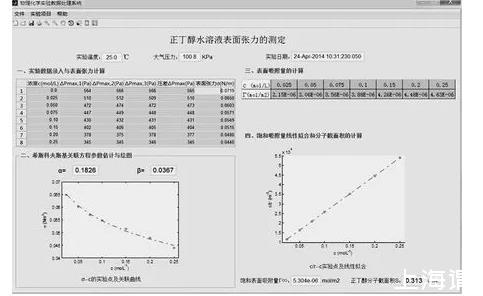 基于MATLAB工程计算平台开发设计的“正丁醇水溶液表面张力的测定”应用软件可用于进行实验数据计算和绘图,可以快速、客观地得到实验结果,避免了手动作图的主观性和人为误差。