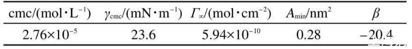 表140°C时烷基季铵盐CTAB与AES复配体系(摩尔比为1:1)的表面性质和特征参数β
