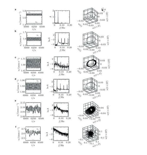 (2)目前关于液层界面张力梯度驱动对流向湍流的超临界转捩在数值方法上主要有流动时序数据的分析和分岔问题的数值算法。流动宏观量的时序数据来自实验结果或者直接数值模拟,对于后者,需要对于不同参数分别进行数值模拟,再通过时间序列频谱及其混沌特性的定量计算分析流动转捩规律,即在大量的离散的数据序列中寻找分岔点,故此过程比较繁琐。而通过构造分岔方程对分岔进行数值计算的方法虽然可以一步到位,但是在选取分岔方程,解高维线性、非线性方程等过程中均需要根据具体的流动模型进行调整,具有一定难度,且对于更加复杂的流动模式需要更大的计算量,用此算法也无法直接计算得到混沌解。上述两种方法各有优缺点,目前在转捩过程的数值研究中较为常用的仍是在不同参数下进行直接数值模拟,而后对大量数据进行频谱分析,识别分岔点;在直接对分岔进行数值计算的研究中,也常常需要通过直接数值模拟来验证分岔得到的解的可靠性与准确性,在今后的研究中可考虑进一步将两种方法结合运用,互相补充、验证。
