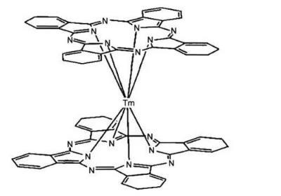 实验所用材料是由山东大学化学化工学院姜建壮教授提供的三明治型酞菁铥化合物TmPc2,其分子结构如图1所示。氯仿从市场购买,纯度为分析纯。以氯仿为溶剂,将TmPc2配制成一定浓度的溶液用于LB膜的制备。LB膜的制备在芬兰产KSV-5000双槽制膜系统上完成,在恒定的温度和表面压力下用水平提拉法制备成LB膜。