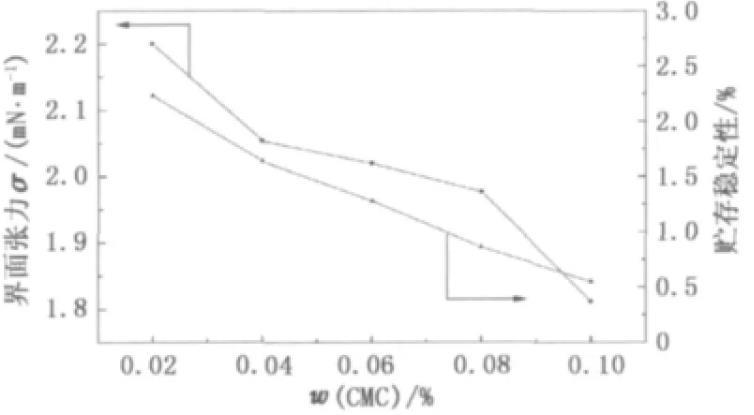 图4羧甲基纤维素钠对油水界面张力和贮存稳定性的影响