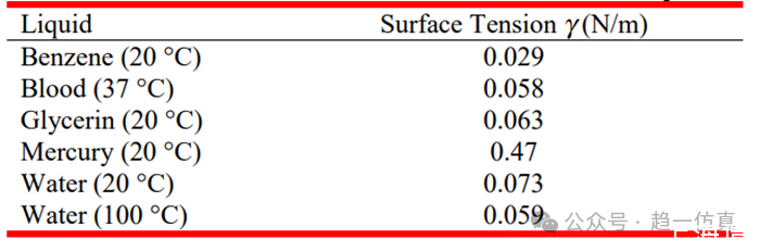 表面张力系数只与液体本身状态有关,常见液体的表面张力(系数)如下: