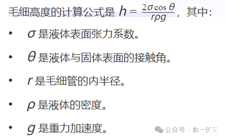 解答上述问题,可以从毛细高度的计算公式中找到答案。