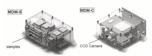 日本计划在SLATS卫星上搭载环境效应探测器,进行空间环境的监测及材料暴露试验,这是首次在50 km轨道上开展材料暴露试验。该暴露试验通过两个搭载模块实施,分别为MDM-S和MDM-C(MDM为MateriasDegradation Monitor的缩写),其中MDM-S是一个包含9种材料被动暴露试验的样品盒,而MDM-C是CCD,用于对暴露试验中样品的退化情况进行拍照。