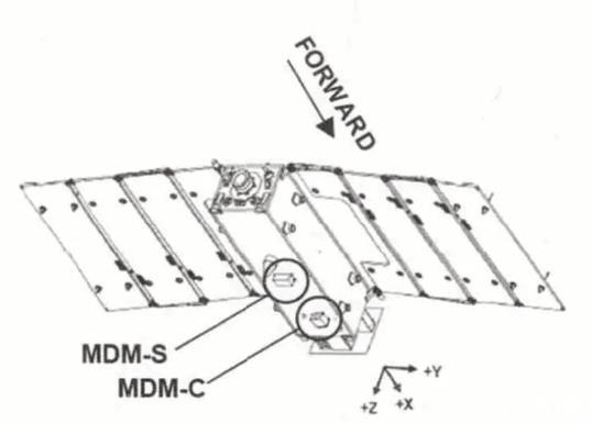 材料降解监视器(MDM,Material Degradation Monitor)由材料样品及光学相机组成,其中材料样品包括常规卫星外部材料及未来抗原子氧新型材料组成。监视器定位在SLATS飞行方向上的底面,光学相机用于对样品进行拍照。