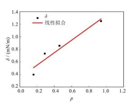 可以看出,系统黏度比从0.16~0.94逐渐增大的过程中,PS/POE体系的界面张力随黏度比的增大而增加。