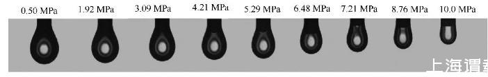 图5 100℃时CO2-甲苯体系液滴形状随压力的变化图
