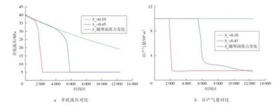 3)考虑变临界流动饱和度的凝析气藏数值模拟模型,能够模拟随着地层压力下降,界面张力上升,凝析油在近井地带聚集难以流动的特征,更准确地表征了凝析油析出后逐渐聚集导致污染加剧的渗流机理,物理意义明确,更符合生产实际。