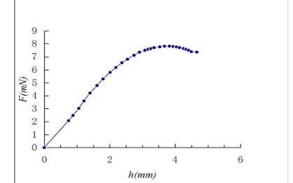 F1的准确计算至关重要,当液面上升至距刀口较小一个距离时,液面会跳跃向上粘住刀口,并引起力敏传感器读数的跃变。液面的跳跃发生后,以刀口与跳跃时液面的高度差作为液膜第一次拉伸量h1。由于液面高度没有变化,所以不要考虑浮力的变化,但需考虑第一次带起液膜的重量。