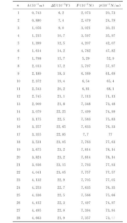计算出F1后采用数据迭代公式(4)可计算出不同液膜拉伸形变量对应的表面张力值。