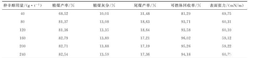 表3仲辛醇对浮选和表面张力的影响试验结果