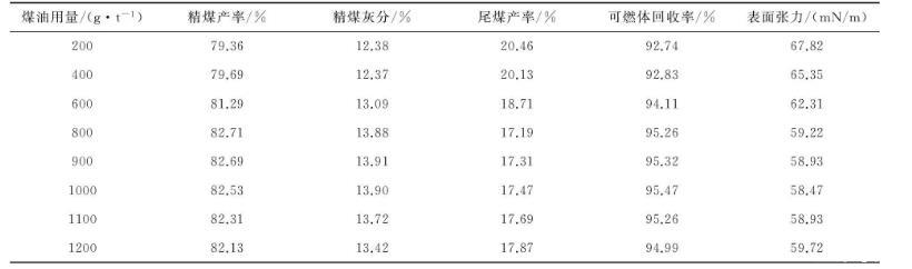 表2煤油对浮选和表面张力的影响试验结果表