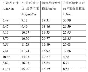 界面张力和界面模量的测定:采用界面张力仪测量仪测量油水界面的界面张力和界面模量。使用蠕动泵对水相液体进行更换,依次为不同样品的水溶液、口腔消化液、胃消化液、小肠消化液。
