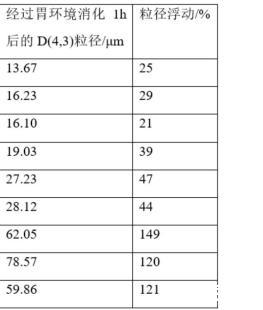 根据表1-3的数据可知,采用本方法制备的玉米内源组分乳液具有粒径小、稳定性好、乳化能力强、降低油水界面张力等优点,能够在胃液消化阶段抵抗胃环境胁迫,实现对功能组分的保护。进一步地,当玉米谷蛋白酶解产物的水解度在优选的1-4%范围内,乳液具有更高的稳定性。