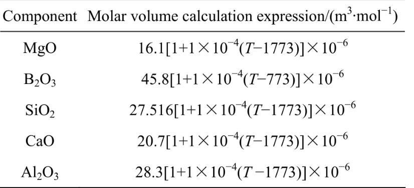 表3纯组元摩尔体积与温度的关系