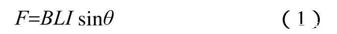 由式(1)可知,F的大小与B、L、I及sinθ均成正比,对于设计好的传感器,其感应线圈的规格尺寸已固定,B、L可视为常数,而θ为90°,故sinθ=1,因此,F与I成正比关系。