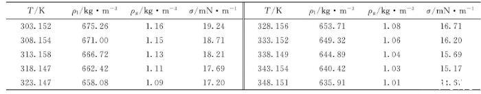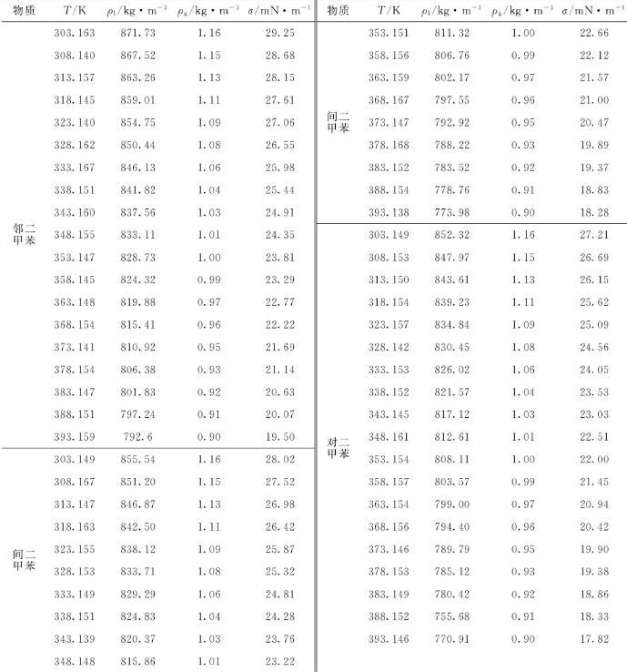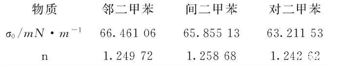 表4邻二甲苯、间二甲苯和对二甲苯表面张力拟合参数