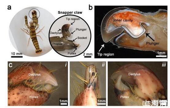 枪虾是一种身长只有5厘米的虾,但是它有一大一小两只熬。