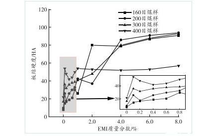 图10煤样板结硬度与溶液中EMI质量分数的关系