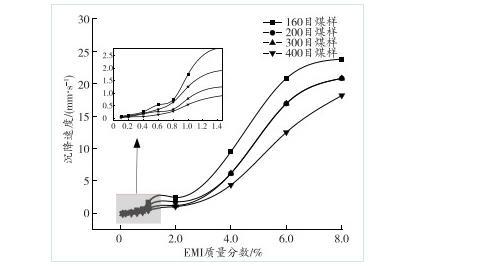 图8煤尘沉降速度与EMI质量分数的关系