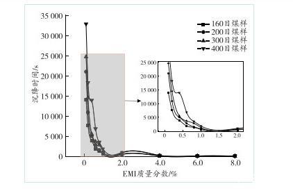 图7煤尘沉降时间与EMI质量分数的关系