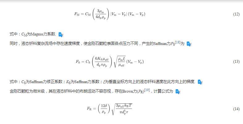 式中:Cm为附加质量力系数;Vp为金刚石颗粒的瞬时速度矢量。