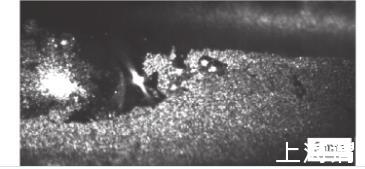 此外,由于金刚石介电常数小,因而光学折射率小。根据文献可知,金刚石的激光折射率为2.4168.此外,金刚石还易发生光的反射现象。图14为激光钎涂过程中,发生的金刚石对激光的反射现象(根据金刚石的形状特征判断,折射闪光的概率极小)。因此,激光经金刚石后反射或折射,可能进入钎料层起到加热钎料涂层的作用,也可能进入空气中从而造成激光能量的损耗。