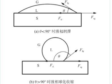润湿角θ的大小直接反映了液相对固体表面的润湿程度,θ越小,润湿性就越好。当θ为0°时,表示完全润湿,小于时为润湿状态,而大于时为不润湿状态。由于相同体积下,球形的表面积最小,表面张力驱使液体聚集到最小表面积状态,在钎料熔化后便聚合在一起收缩成球状,从而发生液态钎料聚合现象。