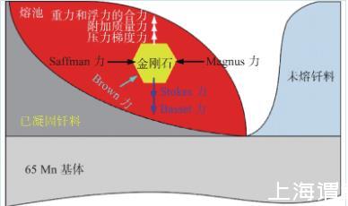 液态钎料的横向速度使金刚石颗粒两边的相对速度不同,使金刚石颗粒发生旋转,并带动周围流体流动,存在Magnus力FM为