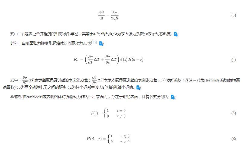 函数和Heaviside函数表明熔体对流驱动力作为一种表面力,存在于熔池表面,计算公式分别为
