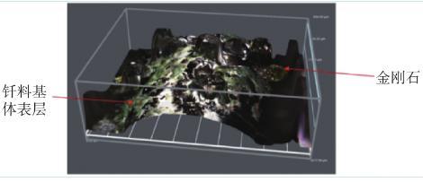 在激光钎涂过程中,金刚石散布于钎料中,钎涂后金刚石位于钎料表层,如图5所示,可见经过激光热源作用,金刚石颗粒迁移至钎涂层表面位置,并突出于钎涂层。为了明确金刚石在激光钎涂中的运动过程,深入分析了金刚石在激光钎涂过程中的运动行为。