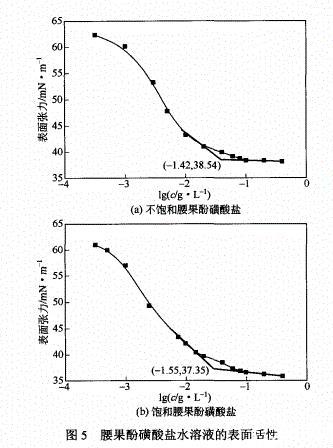侧链烷基的饱和度对腰果酚磺酸盐水溶液的表面活性、界面活性的影响