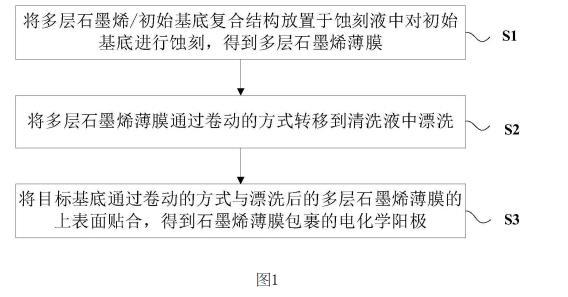 本实施例提供了一种基于石墨烯薄膜包裹的电化学阳极大规模制备方法,如图1所示,包括以下步骤: