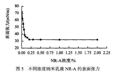 图5不同浓度纳米乳液NR-A的表面张力