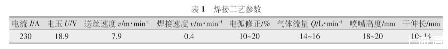 采用CMT一元化焊接工艺,通过正交试验确定主要影响因素,焊接规范参数如表1所示。