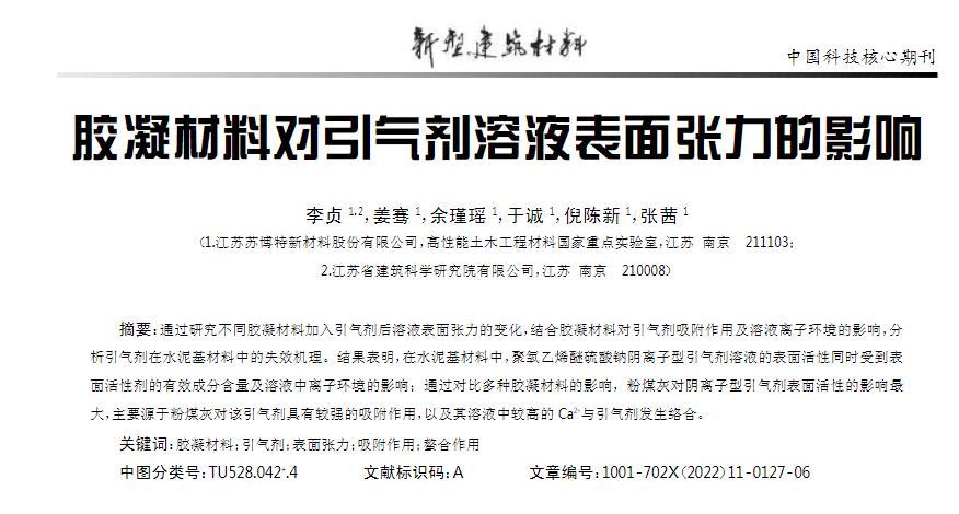 本文研究了混凝土中常用的胶凝材料组分(水泥、粉煤灰、矿粉、硅灰)对引气剂引气作用失效的影响机制,根据溶液表面张力的变化评价引气剂在不同胶凝材料水泥基材料中的起泡性能。