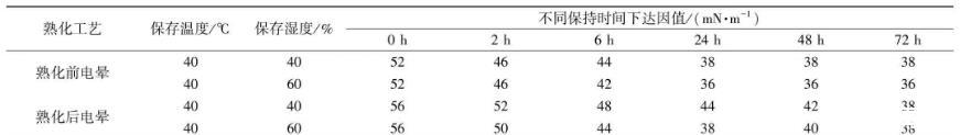 图6熟化后电晕不同保存时间的影响因素
