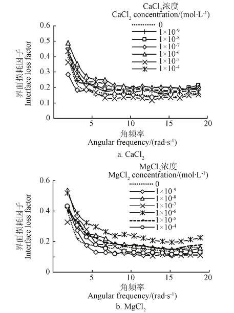图5 CaCl2及MgCl2浓度对油水界面流变特性的影响