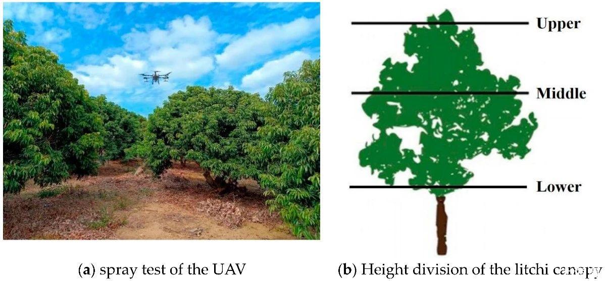 图1.T30植保无人机喷雾机在荔枝园喷雾沉积测量。