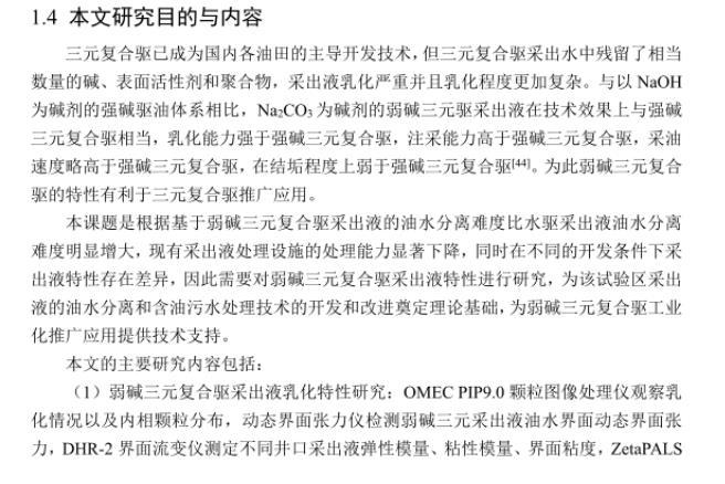 弱碱三元复合驱采出液中残留了相当数量的碱、表面活性剂和聚合物,油水乳化严重且多种乳状液并存,造成油水分离困难。弱碱三元驱采出液处理技术的研究对弱碱三元采出液油水分离工艺及操作参数的选择奠定了理论基础,有利于弱碱三元复合驱在油田中的应用。
