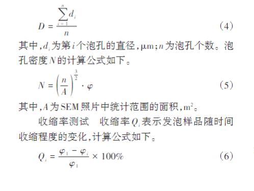 其中,A为SEM照片中统计范围的面积,m2。收缩率测试收缩率Qi表示发泡样品随时间收缩程度的变化,计算公式如下。