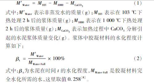 采用TAMAir八通道微量热仪测试水泥净浆96h内的水化热。用非蒸发水烧失量测试值来估算水泥的水化程度。