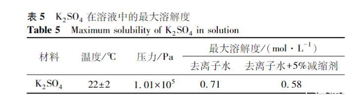 表5列出了K2SO4的最大溶解度。结果表明,SRA确实会降低K2SO4的最大溶解度。但是,对比图5可以发现,浆体孔溶液中的K+和SO42-的浓度还远远未达到K2SO4的最大溶解度。因此,并不能依据SRA会降低K2SO4最大溶解度的结果判定这是B组溶液中SO42-浓度低的原因,还需要研究K2SO4在SRA中的溶解速度。