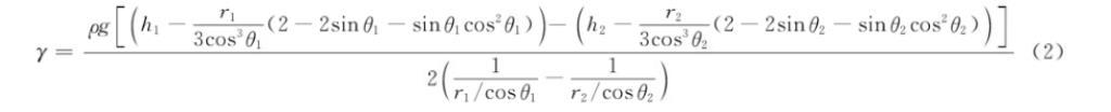 将Δh代入表面张力计算公式,得到式(2):