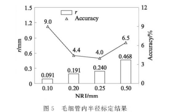 图5毛细管内半径标定结果
