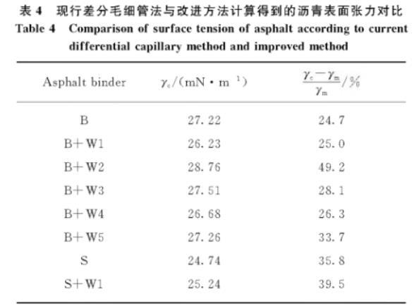 表4现行差分毛细管法与改进方法计算得到的沥青表面张力对比