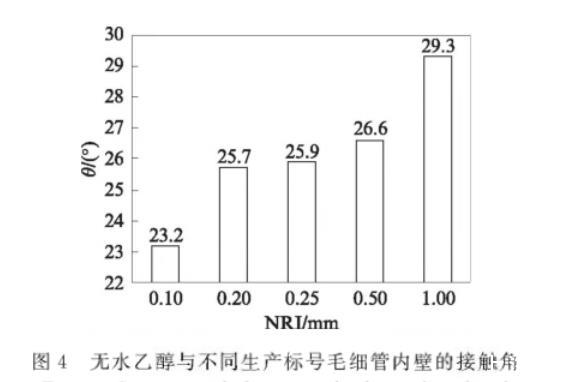图4无水乙醇与不同生产标号毛细管内壁的接触角
