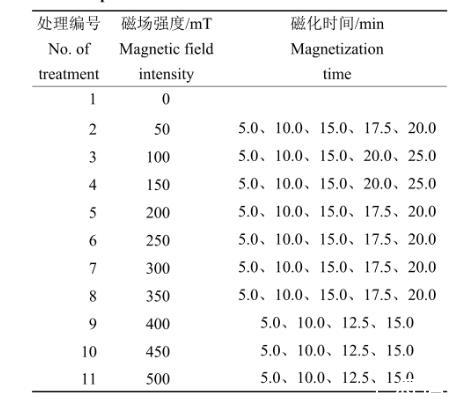表1磁化除草剂溶液表面张力试验设计表