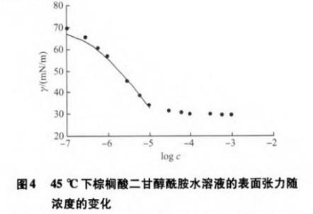 图4为45℃下棕榈酸二甘醇酰胺的γ-logc曲线。